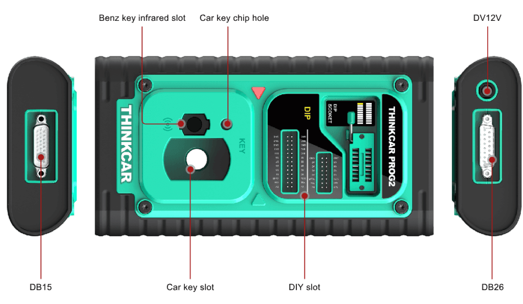 ThinkCar Prog2 se utiliza principalmente para leer y escribir datos de chips de llaves de coche, incluyendo lectura y escritura de EEPROM, lectura y escritura de microcontroladores integrados, generación de llaves infrarrojas de Mercedes Benz, generación de llaves especiales, lectura de códigos INS de motores BMW y lectura y escritura de chips CAS4+/FEM de BMW, etc.
