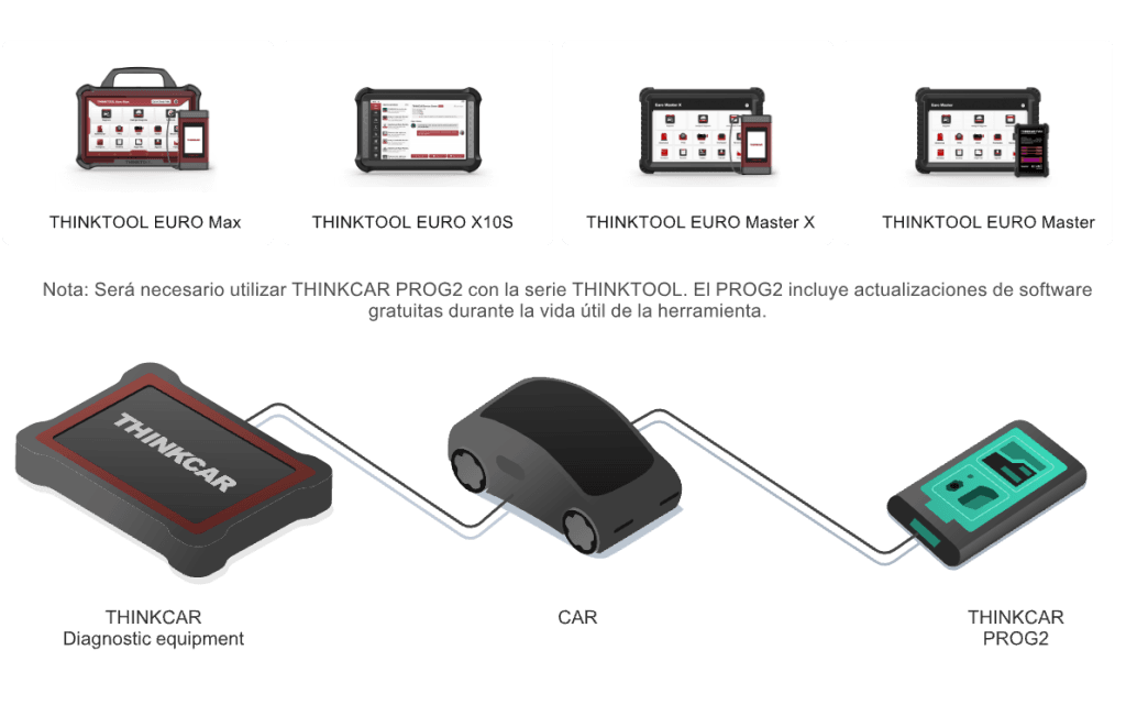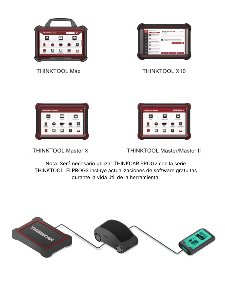 THINKCAR PROG2 admite dispositivos de diagnóstico como THINKTOOL MASTER, THINKTOOL MASTER X, THINKTOOL MAX.